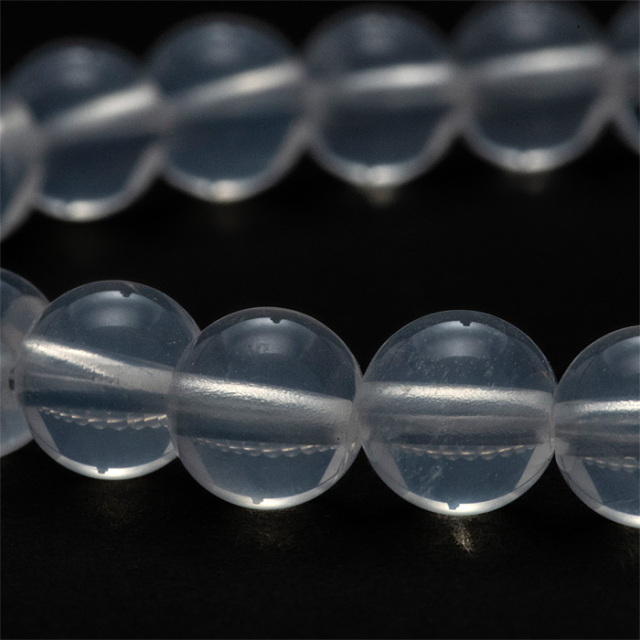 ムーンクォーツ(Moon quartz)は、乳白色から半透明の柔らかな光沢を持つ石で、光を受けると月光のように優しく輝くのが特徴です。水晶(クォーツ)の一種で、内包物や微細な構造によって淡く神秘的な光を放ちます。その外観から「ムーンストーン」に似た雰囲気を持つため、「ムーンクォーツ」と呼ばれていますが、鉱物学的には正長石であるムーンストーンとは別物です。