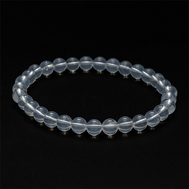 ムーンクォーツ(Moon quartz)は、乳白色から半透明の柔らかな光沢を持つ石で、光を受けると月光のように優しく輝くのが特徴です。水晶(クォーツ)の一種で、内包物や微細な構造によって淡く神秘的な光を放ちます。その外観から「ムーンストーン」に似た雰囲気を持つため、「ムーンクォーツ」と呼ばれていますが、鉱物学的には正長石であるムーンストーンとは別物です。
