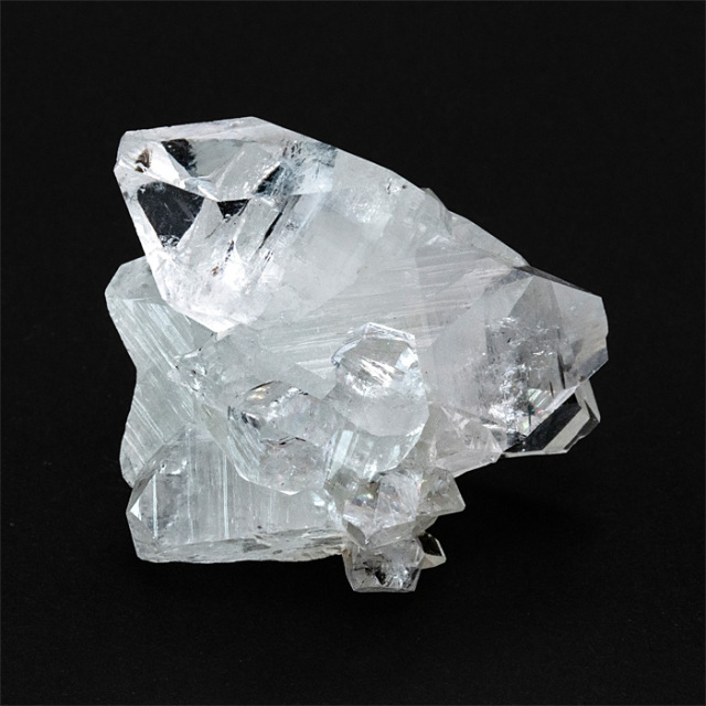 アポフィライト(Apophyllite)は、美しい結晶構造で知られる鉱物です。「アポフィライト」はギリシャ語の「apo(離れる)」+「phyllon(葉)」に由来し、加熱すると水分を失い、葉のように剥がれることから名付けられました。ピラミッド状やテーブル状の結晶で産出することが多く、結晶面が非常に平滑で光をよく反射します。アポフィライトの和名は「魚眼石(ぎょがんせき)」といいますが、これは、アポフィライトの結晶は透明~半透明で、つややかな光沢と丸みのある面を持つことがあり、その様子が魚の目(魚眼)のように見えることから、この和名がつけられました。特に断面に見られる反射や光の感じが、魚の眼球に似ているとされたのです。