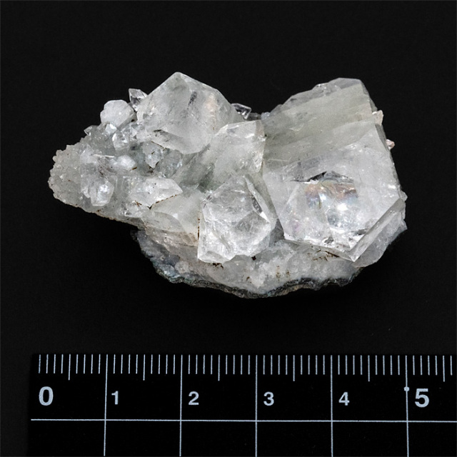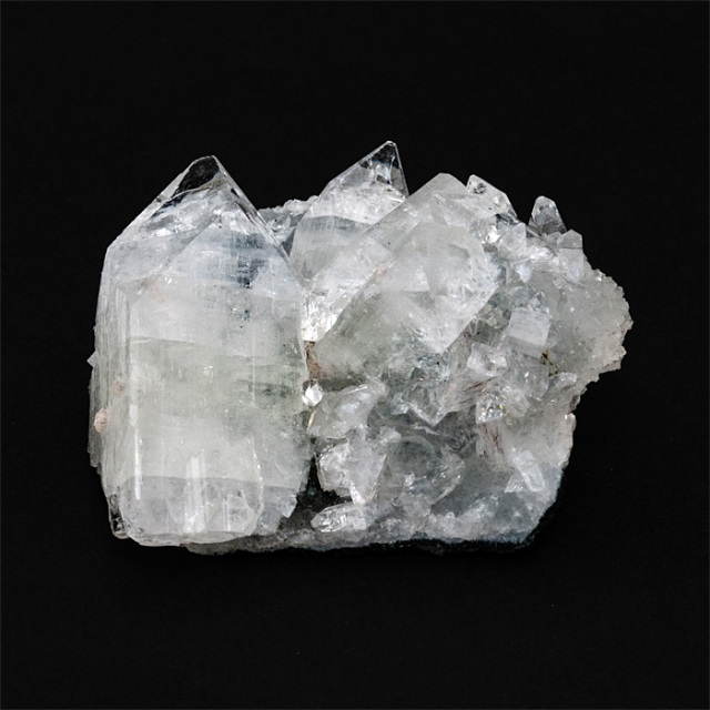 アポフィライト(Apophyllite)は、美しい結晶構造で知られる鉱物です。「アポフィライト」はギリシャ語の「apo(離れる)」+「phyllon(葉)」に由来し、加熱すると水分を失い、葉のように剥がれることから名付けられました。ピラミッド状やテーブル状の結晶で産出することが多く、結晶面が非常に平滑で光をよく反射します。アポフィライトの和名は「魚眼石(ぎょがんせき)」といいますが、これは、アポフィライトの結晶は透明~半透明で、つややかな光沢と丸みのある面を持つことがあり、その様子が魚の目(魚眼)のように見えることから、この和名がつけられました。特に断面に見られる反射や光の感じが、魚の眼球に似ているとされたのです。