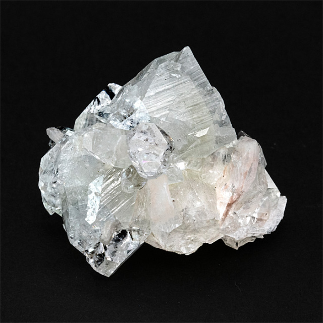 アポフィライト(Apophyllite)は、美しい結晶構造で知られる鉱物です。「アポフィライト」はギリシャ語の「apo(離れる)」+「phyllon(葉)」に由来し、加熱すると水分を失い、葉のように剥がれることから名付けられました。ピラミッド状やテーブル状の結晶で産出することが多く、結晶面が非常に平滑で光をよく反射します。アポフィライトの和名は「魚眼石(ぎょがんせき)」といいますが、これは、アポフィライトの結晶は透明~半透明で、つややかな光沢と丸みのある面を持つことがあり、その様子が魚の目(魚眼)のように見えることから、この和名がつけられました。特に断面に見られる反射や光の感じが、魚の眼球に似ているとされたのです。