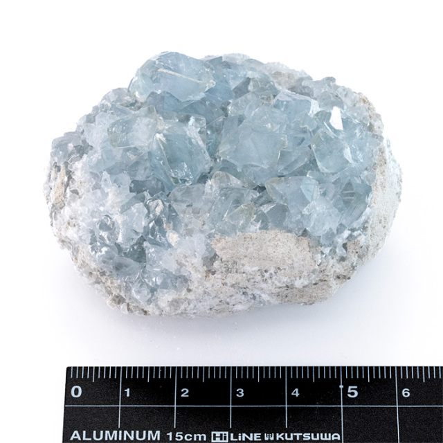 セレスタイト(Celestite)は、美しい淡い青色が特徴の鉱物で、主に硫酸ストロンチウムで構成されています。セレスタイン(Celestine)とも呼ばれます。セレスタイトの名前は、ラテン語の「caelestis(天の、空の)」に由来しており、その青空のような美しい青色を指しています。この色は、セレスタイトを特徴づける最大の魅力の一つです。