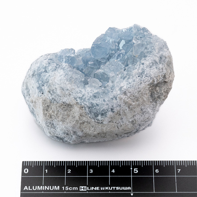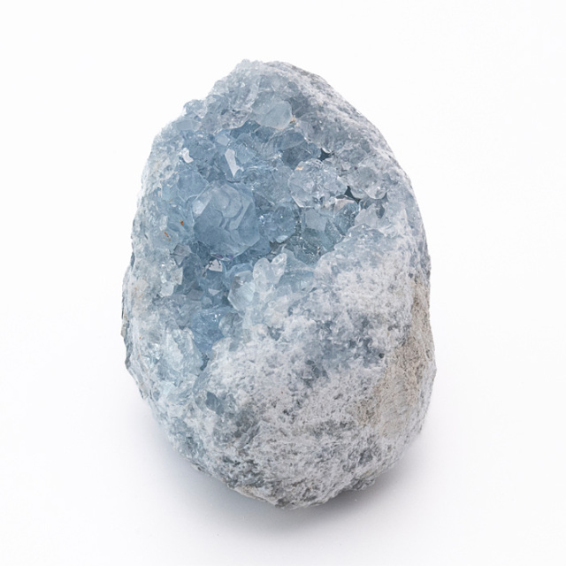 セレスタイト(Celestite)は、美しい淡い青色が特徴の鉱物で、主に硫酸ストロンチウムで構成されています。セレスタイン(Celestine)とも呼ばれます。セレスタイトの名前は、ラテン語の「caelestis(天の、空の)」に由来しており、その青空のような美しい青色を指しています。この色は、セレスタイトを特徴づける最大の魅力の一つです。