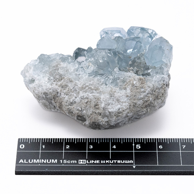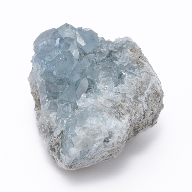 セレスタイト(Celestite)は、美しい淡い青色が特徴の鉱物で、主に硫酸ストロンチウムで構成されています。セレスタイン(Celestine)とも呼ばれます。セレスタイトの名前は、ラテン語の「caelestis(天の、空の)」に由来しており、その青空のような美しい青色を指しています。この色は、セレスタイトを特徴づける最大の魅力の一つです。