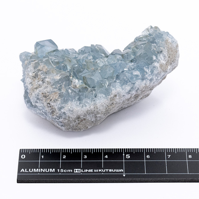 セレスタイト(Celestite)は、美しい淡い青色が特徴の鉱物で、主に硫酸ストロンチウムで構成されています。セレスタイン(Celestine)とも呼ばれます。セレスタイトの名前は、ラテン語の「caelestis(天の、空の)」に由来しており、その青空のような美しい青色を指しています。この色は、セレスタイトを特徴づける最大の魅力の一つです。