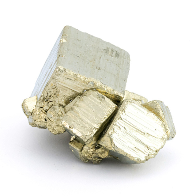 パイライト(Pyrite)は、鉄と硫黄から成る硫化鉱物です。金属光沢のある真鍮~黄金色で、立方体や八面体の美しい結晶を作ることが多いのが特徴です。その見た目の輝きと金属的な光沢が金に似ており、金と間違われることがあるため「愚者の金(fool's gold)」とも呼ばれています。