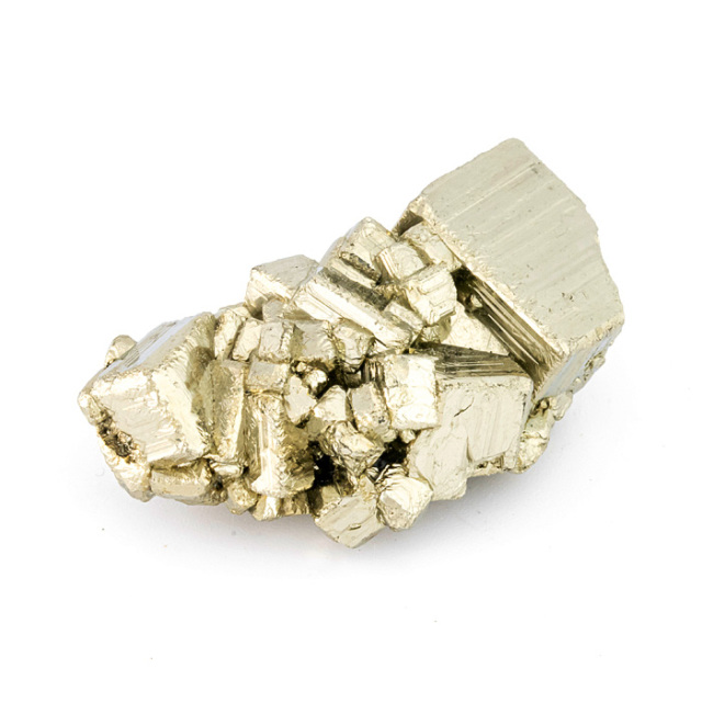 パイライト(Pyrite)は、鉄と硫黄から成る硫化鉱物です。金属光沢のある真鍮~黄金色で、立方体や八面体の美しい結晶を作ることが多いのが特徴です。その見た目の輝きと金属的な光沢が金に似ており、金と間違われることがあるため「愚者の金(fool's gold)」とも呼ばれています。
