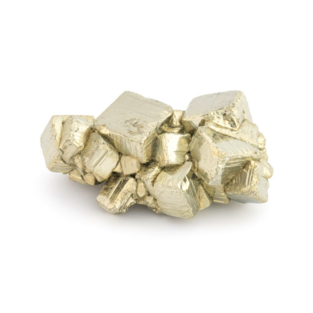 パイライト(Pyrite)は、鉄と硫黄から成る硫化鉱物です。金属光沢のある真鍮~黄金色で、立方体や八面体の美しい結晶を作ることが多いのが特徴です。その見た目の輝きと金属的な光沢が金に似ており、金と間違われることがあるため「愚者の金(fool's gold)」とも呼ばれています。