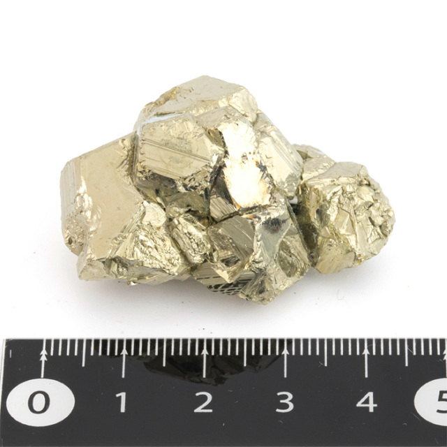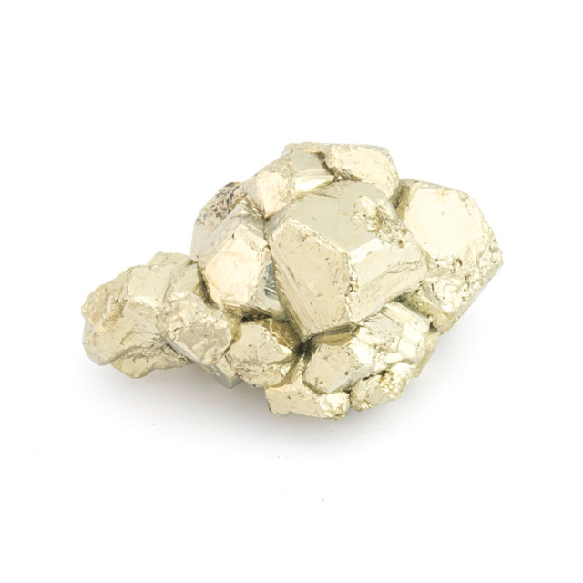 パイライト(Pyrite)は、鉄と硫黄から成る硫化鉱物です。金属光沢のある真鍮~黄金色で、立方体や八面体の美しい結晶を作ることが多いのが特徴です。その見た目の輝きと金属的な光沢が金に似ており、金と間違われることがあるため「愚者の金(fool's gold)」とも呼ばれています。