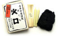 原料は綿・ツバナ・がまの穂を蒸し焼きにしたものに煙硝に炭や染料で赤黒色等に染めたもので火打箱に入れて火種用に使いました。