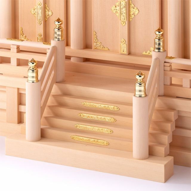御神札を入れて頂くには、まず高欄を外して、次に御扉を取り外してお納めください。